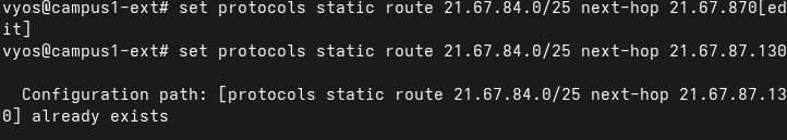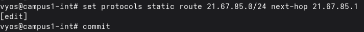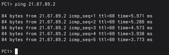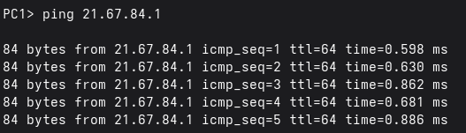 I then configured the gateways of the Blue and Green subnets, the gateways being 21.67.84.1 and 21.67.85.1 respectively. With this, the subnets are now able to ping each other.