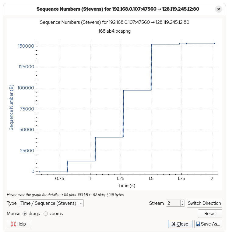 Overall, the TCP Wireshark Lab gave me an insight on how TCP works, if only through the lens of a packet trace. I would definitely love to take a look at a TCP implementation and see how packets get reassembled and how the data gets sent to the application layer.