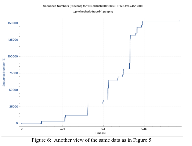 This laboratory exercise explored the behavior of TCP by analyzing a trace of the TCP segments sent and received in transferring a 150 KB file (containing the text of Lewis Carrol's Alice's Adventures in Wonderland) from a computer to a remote server. Analyzed as well is TCP's use of sequence and acknowledgment numbers for providing reliable data transfer, and congestion and flow control mechanisms to minimize dropped packets due to queuing losses. The performance of TCP was also investigated in terms of throughput and round-trip time.